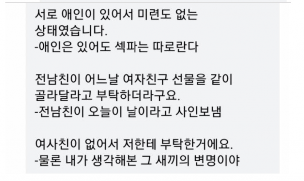 이렇게 현재 남자친구가 있으면서도 당당하게 행동을 했고 현 남자친구에게도 충격적인 문자를 남겼다.