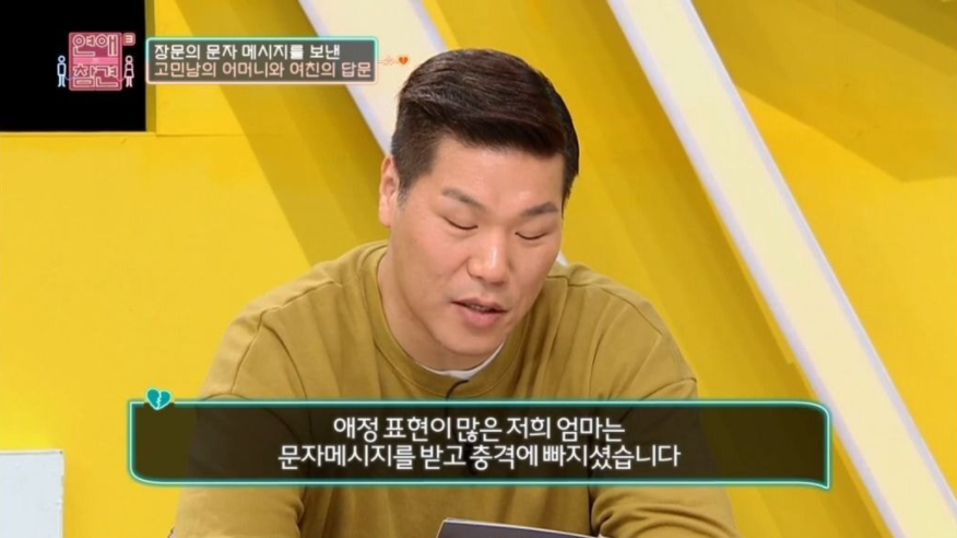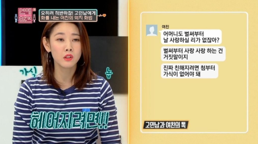 함께 올라온 사진에는 ‘연애의 참견’ 캡쳐본이 담겨져 있었다. 역대급 사연으로 네티즌들의 큰 관심을 받은 그 사연을 지금부터 함께 살펴보자.