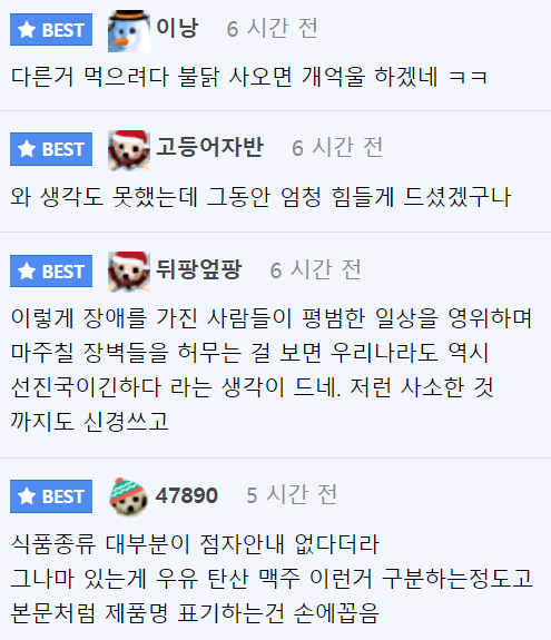 이를 본 온라인 커뮤니티 네티즌들은 “정말 생각도 못했는데 시각장애를 가진 사람들은 엄청 힘들게 컵라면을 드셨겠네요.”라는 반응을 보였다.