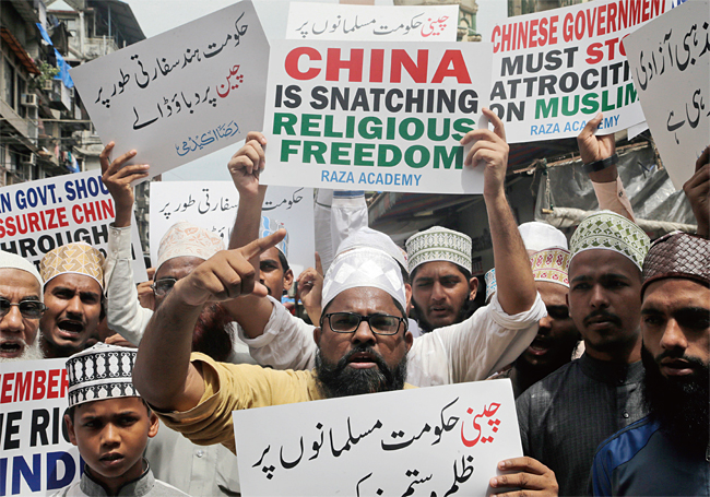 해당 유튜버는 터키의 상징색인 빨간 옷을 입고 위구르 민족 거리를 찾았다.