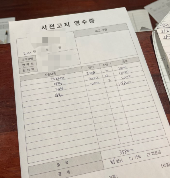 그 이유는 ‘358.000원’을 지불하라는 영수증이였다.