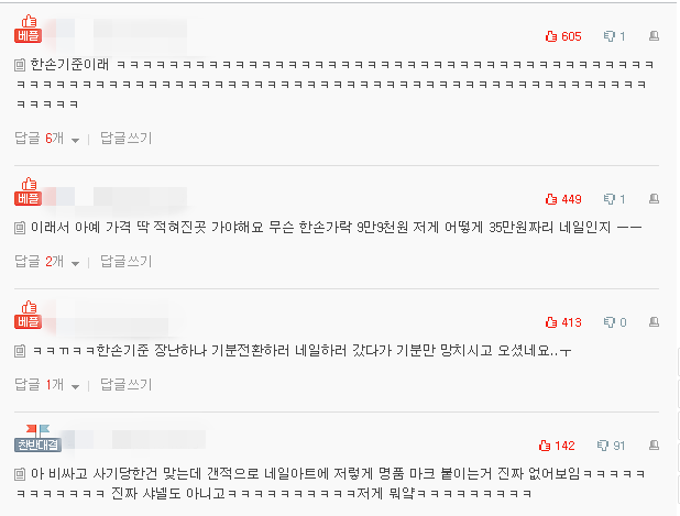 네일아트를 다 받고 계산을 하려고 하는데 A씨는 충격을 받았다.