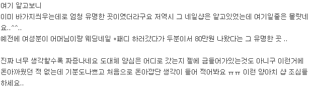 지난 커뮤니티에 올라온 글에 따르면 A씨는 4년동안 네일아트를 받으면서 이런 황당한 일은 처음 겪는다며 글을 시작했다.