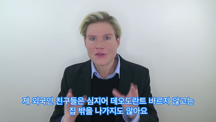 영상의 내용은 요아킴이 한국에 와서 충격적으로 느꼈던 것 중 하나로 한국에서는 데오도란트 사용이 보편적이지 않지만 사람들에게 향기가 난다는 것이었다.