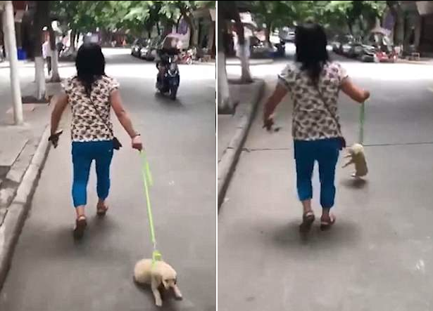 애완견을 목줄에 매달고 흔들며 끌고 간 잔인한 여성의 모습이 담긴 영상이 공개되며 충격을 자아냈다.