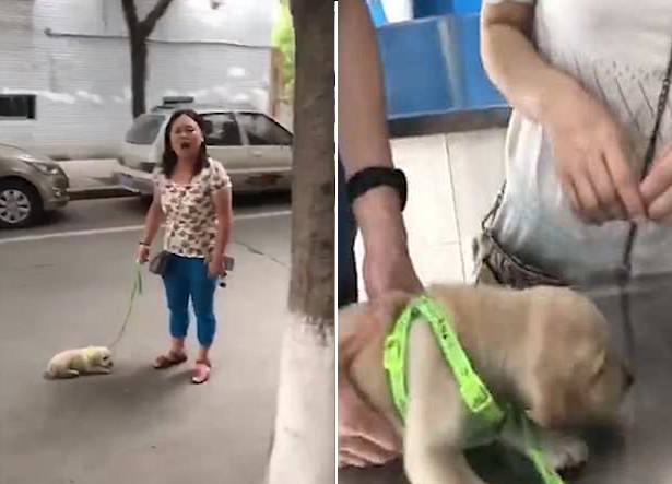 행인은 여성의 충격적인 행동에 너무 놀랐고, 그에게 다가가 강아지를 학대하지 말라고 이야기했다.