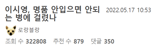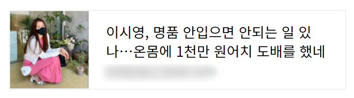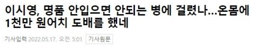 작성자 A씨는 “이시영, 명품 안입으면 안되는 병에 걸렸나…온몸에 1천만 원어치 도배를 했네” 라는 제목의 글로 많은 이들의 궁금증을 증폭시켰다.