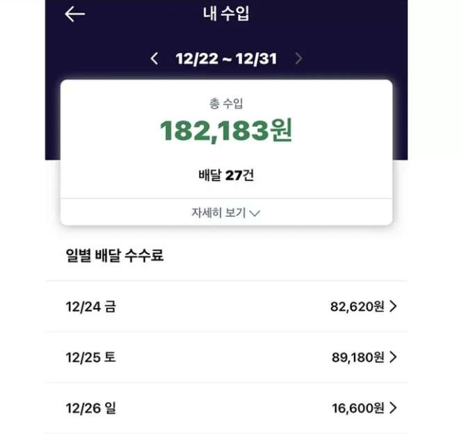 배달 알바는 거리에 따라 금액이 정해지는데 크리스마스엔 배달원들이 줄어드는 기간이기에 A씨는 건당 1만원을 받을 수 있었다고 한다.
