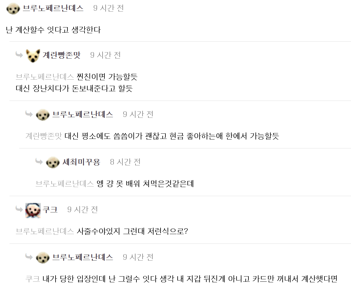 이어서 글쓴이는 “그 후 남은 친구들과 장난으로 화장실 간 친구의 지갑에서 카드를 꺼내 계산을 했습니다.”라고 말을 덧붙였다.