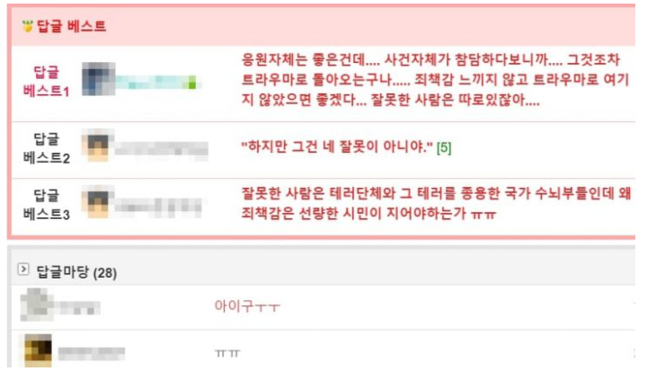 이 글을 읽은 네티즌들은 “응원 자체는 좋은 건데.. 사건 자체가 참담하다 보니까..” “하지만 그건 네 잘못이 아니야” 등의 안쓰러운 반응을 보였다.