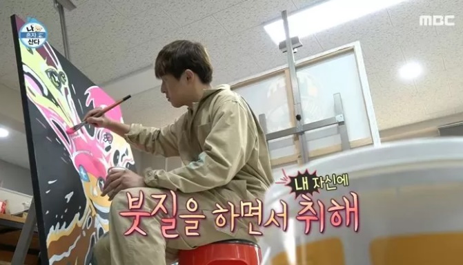 기안84는 “낭만이 있어요. 작업복을 입으면 ‘나는 미술 하는 사람이구나’. 좀 멋있어. 컴퓨터에서 하면 다크서클 내려오는 샐러리맨 느낌인데 붓질을 하면서 취해. 자존감이 올라가”라며 그림을 재밌어하는 자신의 모습에 행복해했다.