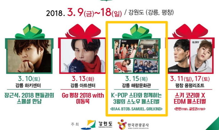 강릉 해람문화관에서 열리는 해당 이벤트에는 B1A4, 사무엘, 걸카인드 그리고 육성재가 소속된 비투비가 참가해 공연을 펼쳤다.