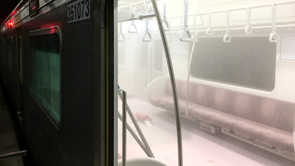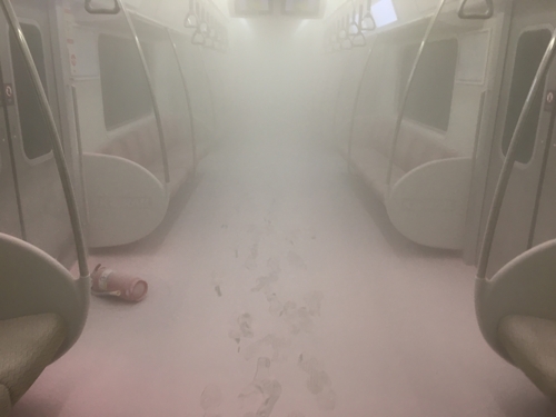 잠에서 깬 A 중위는 자신이 갇혔다는 사실을 깨닫고 격분해 전동차 1번 칸과 4번 칸을 오가며 소화기를 꺼내 분사했다.