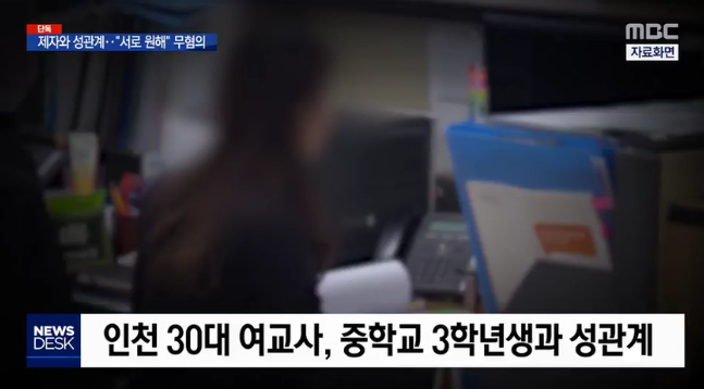 이들은 여러 차례 관계를 가진 것으로 확인되었는데 충격적이게 이 여교사는 무혐의를 받았다고 한다.