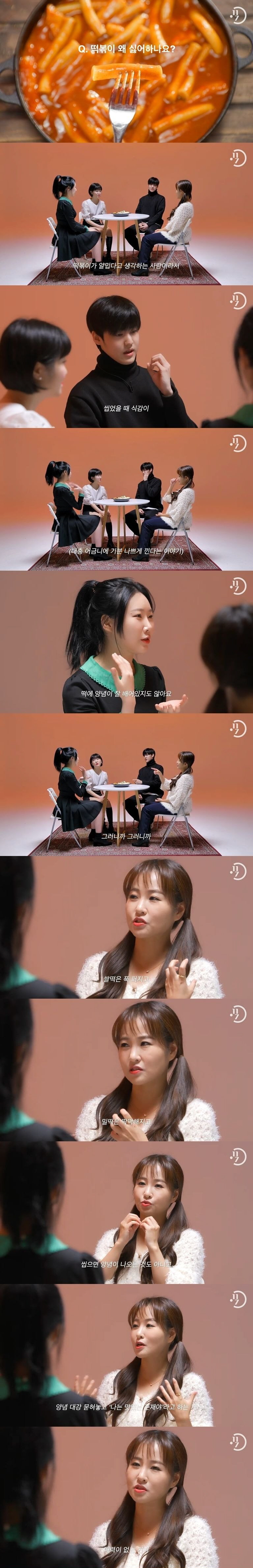 방송에 출연한 출연진은 “떡볶이는 얄밉다고 생각한다.”, “씹었을 때 식감이 이상하고 어금니에 기분 나쁘게 끼는 것도 싫다.”라며 이야기를 시작했다.