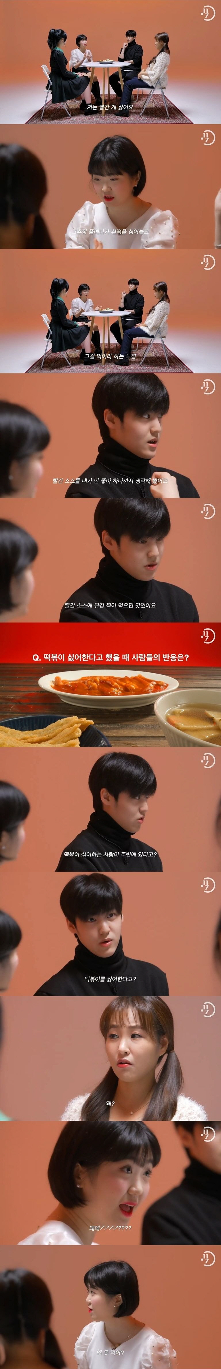 “떡볶이를 싫어한다고 했을 때 사람들의 반응은 이해할 수 없다는 반응이 많았다.”라며 당시 상황을 전했다.