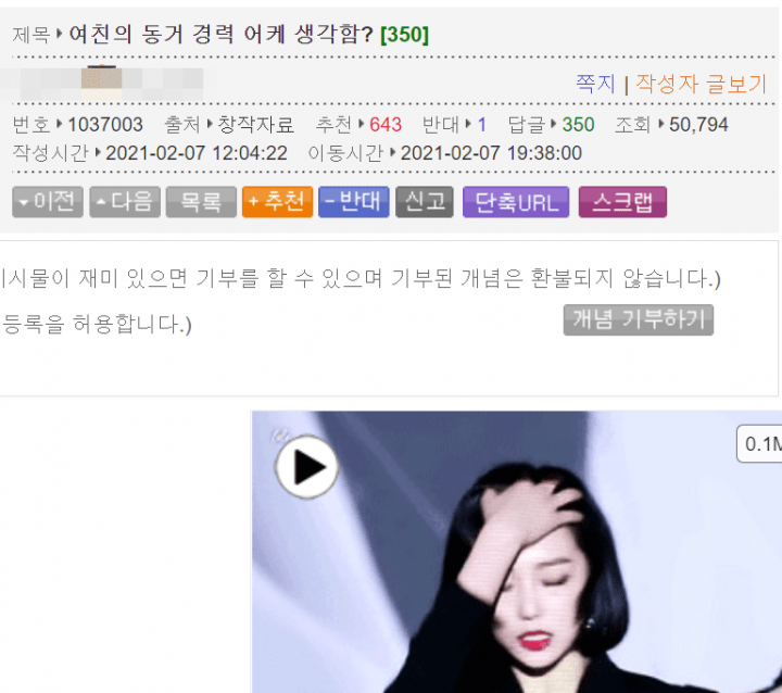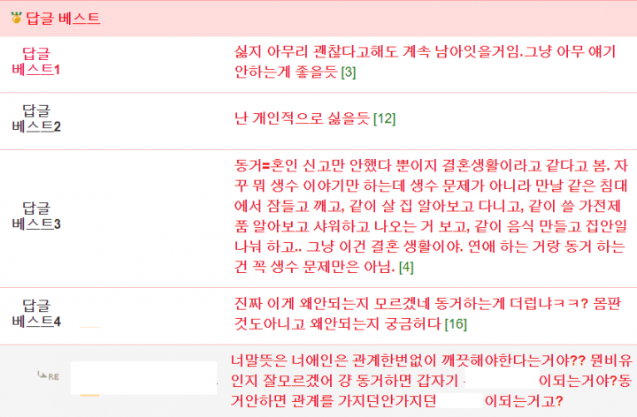 “여자 동거경력은 전과경력”이라며 난리난 글