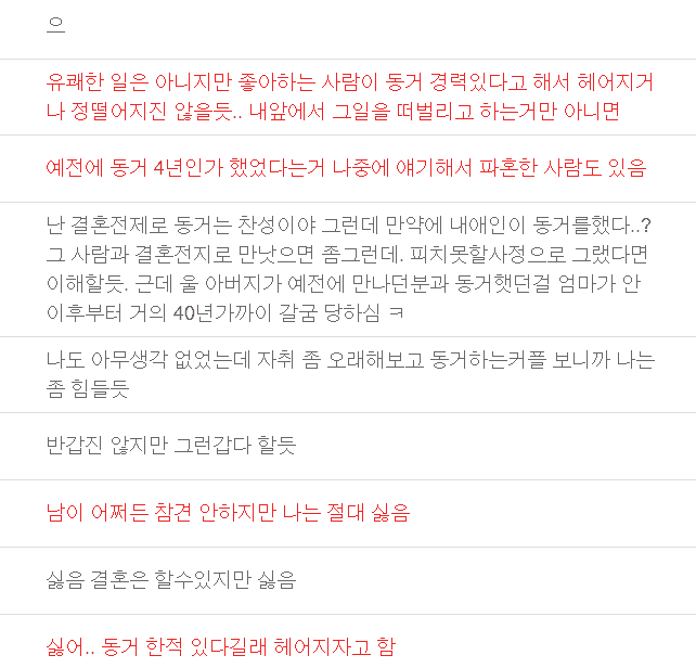 하지만 A씨는 동거한 경험이 마치 전과경력인것 마냥 우울해하는 모습을 보였었다고 한다.