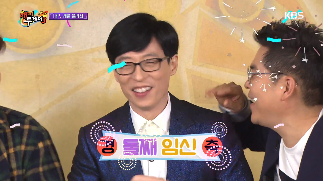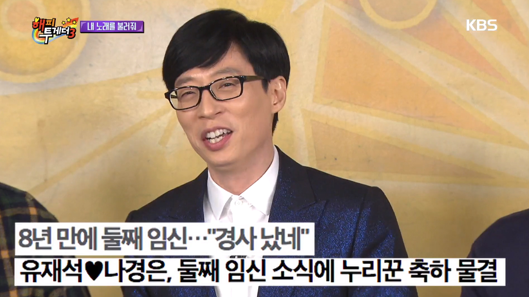 KBS 2TV ‘해피투게더3’ 제작진에 의하면 방송 녹화 중 유재석이 둘째 임신이라는 기쁜 소식과 함께 비하인드 스토리를 출연진에게 전했다.