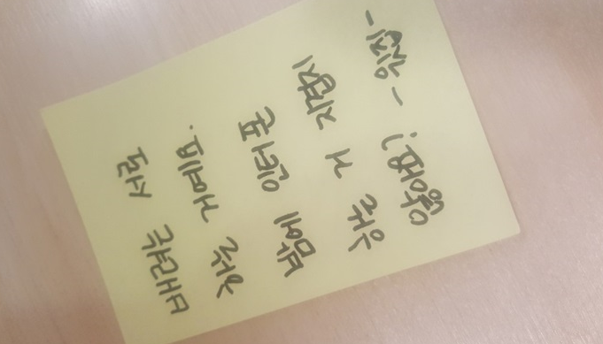 글쓴이는 오히려 “위층이 내 집 앞에 ‘배려는 서로 하는 거예요’라고 적은 포스트잇을 붙였다”고 게시글에 적었다.