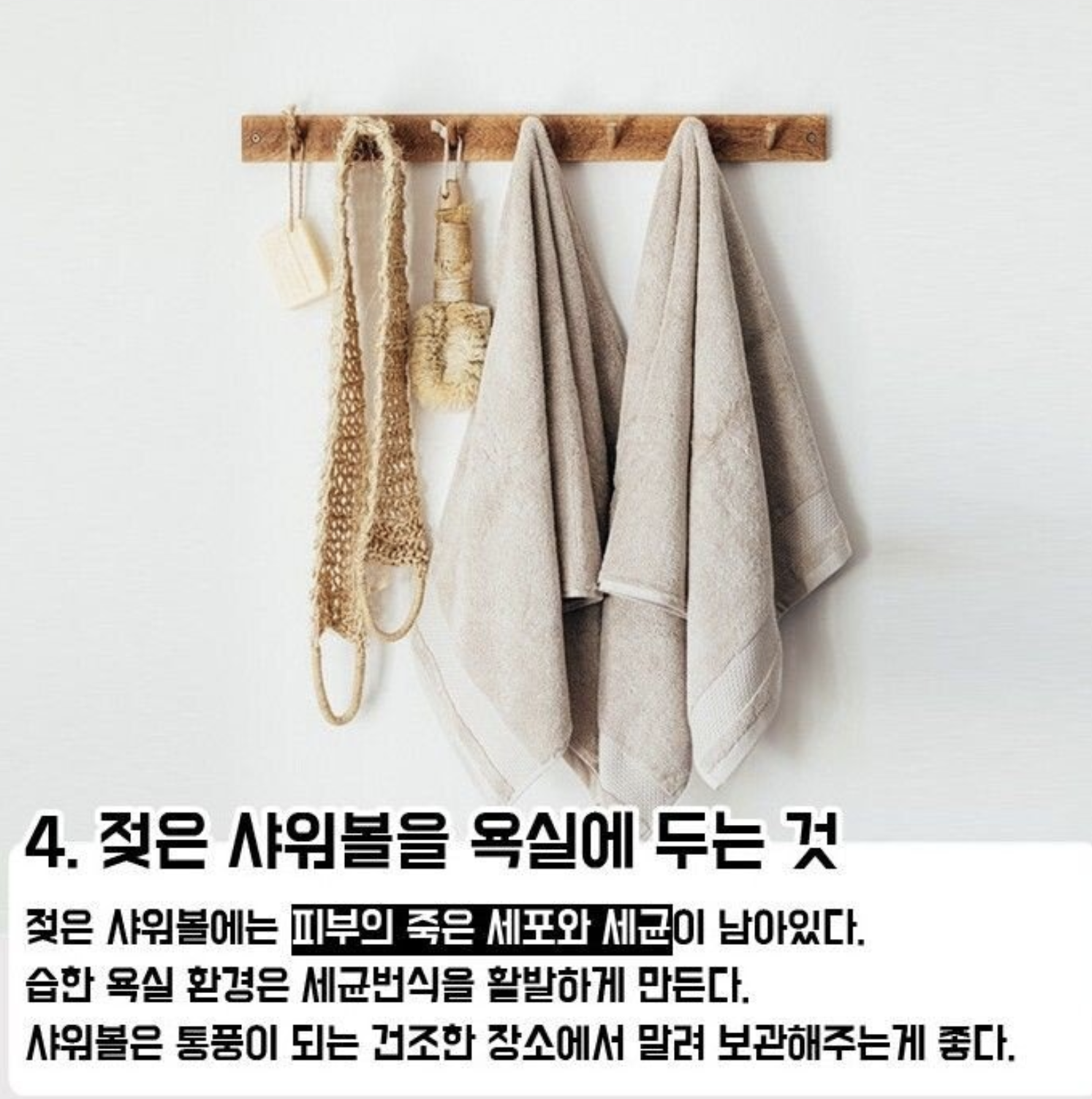 #4 젖은 샤워볼을 욕실에 두면 안된다.