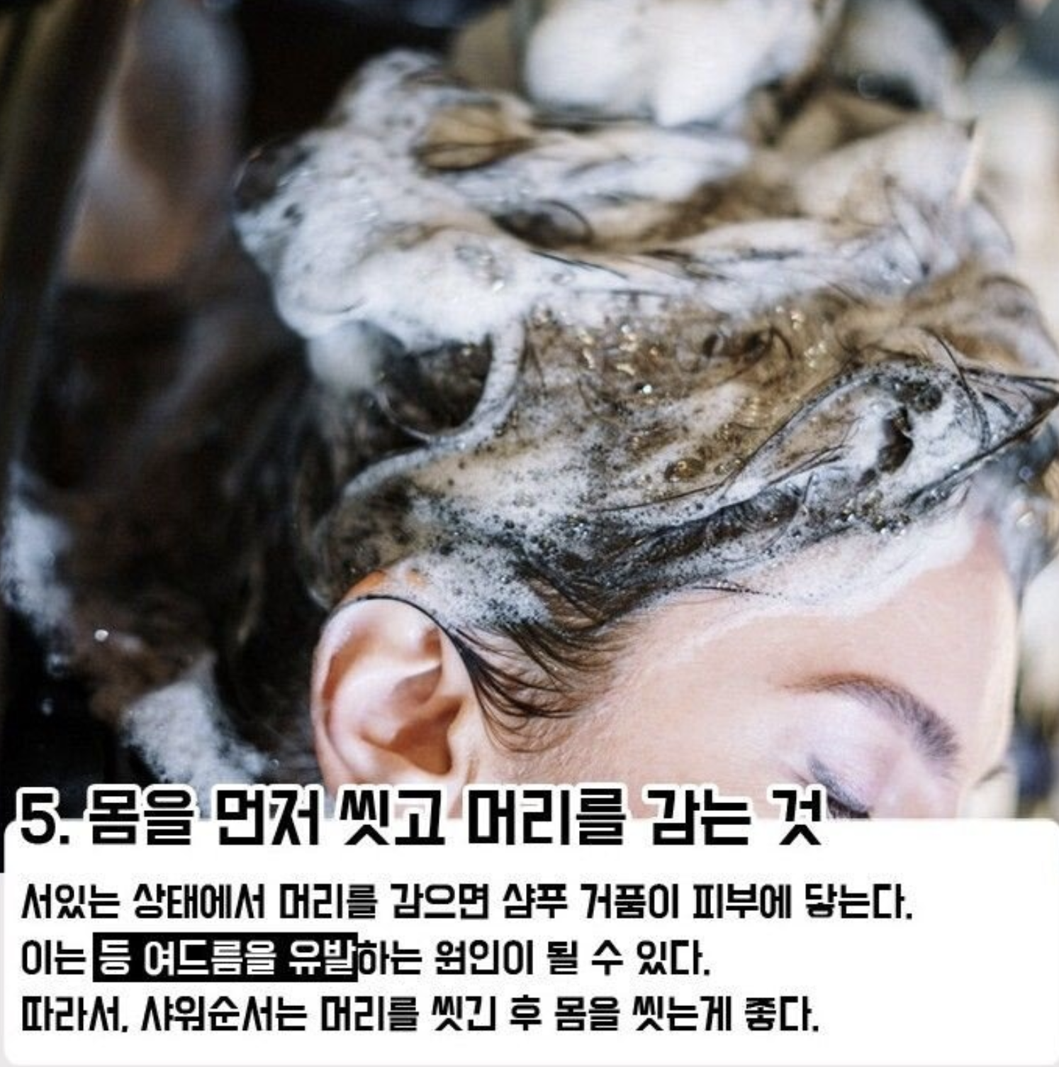 #5 머리를 먼저 감고 몸을 씻어야 한다.