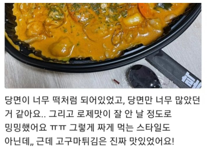 글 내용에는 배달음식을 먹은 소비자가 리뷰를 작성한 내용이 담겨 있었는데 그 내용은 이러하다.