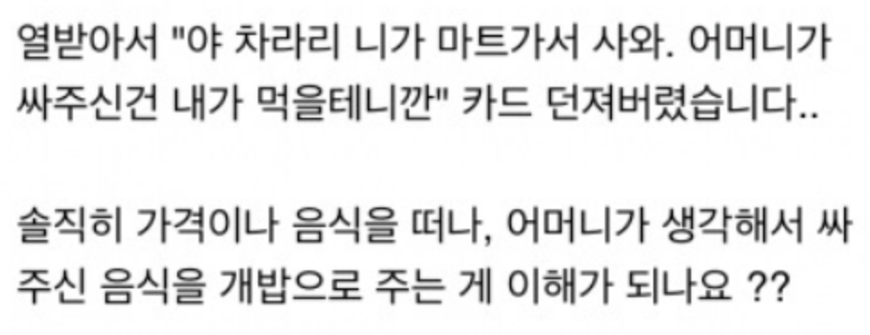 “시어머니가 주신 걸로 강아지한테 개밥 만들어줬더니 남편이 먹는 걸로 쪼잔하게 성질내네요.