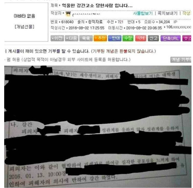 최근 한 온라인 커뮤니티에는 2016년도에 일어났던 사건이 재조명됐다.