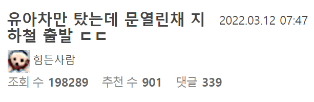 해당 게시글을 올린 작성자 A씨는 “유아차만 탔는데 문열린채 지하철 출발해서 결국 일어난 사건”라는 제목의 글로 많은 이들의 관심을 끌었다.