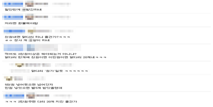 이어서 ‘천 원 내면 닭다리 하나 줄 건가?’ ‘닭다리 한 개에 천 원이면 이 만 원이면 닭다리 20개네’ ‘2만 원 주면 다리 20개 줄 건가?’ 등등의 해당 업주의 닭다리 가격 책정 논란 또한 일고 있다.