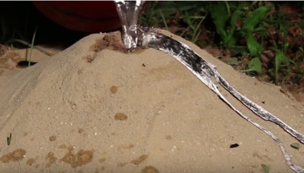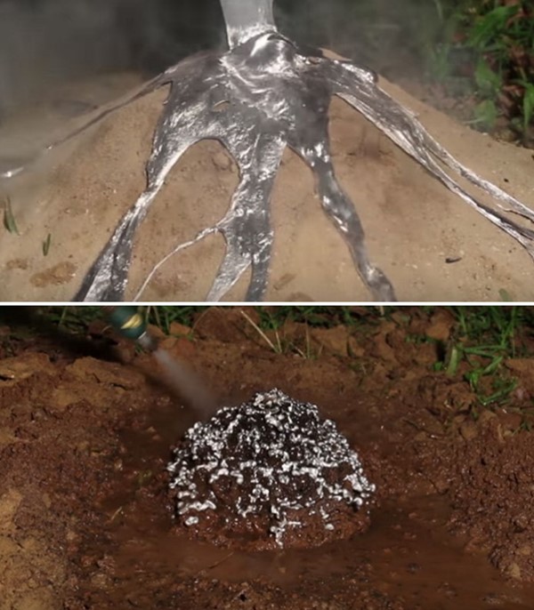 실험이 진행된 곳은 버려진 ‘붉은 개미’의 개미집으로, 혹여나 남아있는 개미가 있을 수도 있어 알루미늄을 붓기 전 연기를 피워 개미들을 모두 내보낸 후 실험을 시작했다.
