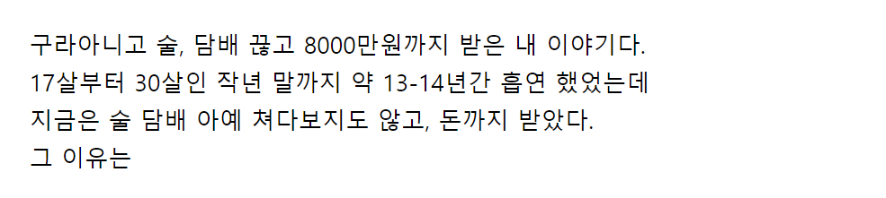 최근 온라인 커뮤니티에 올라온 “31살에 담배 끊고 8000만 원 번 썰”라는 제목의 게시글이 화제다.