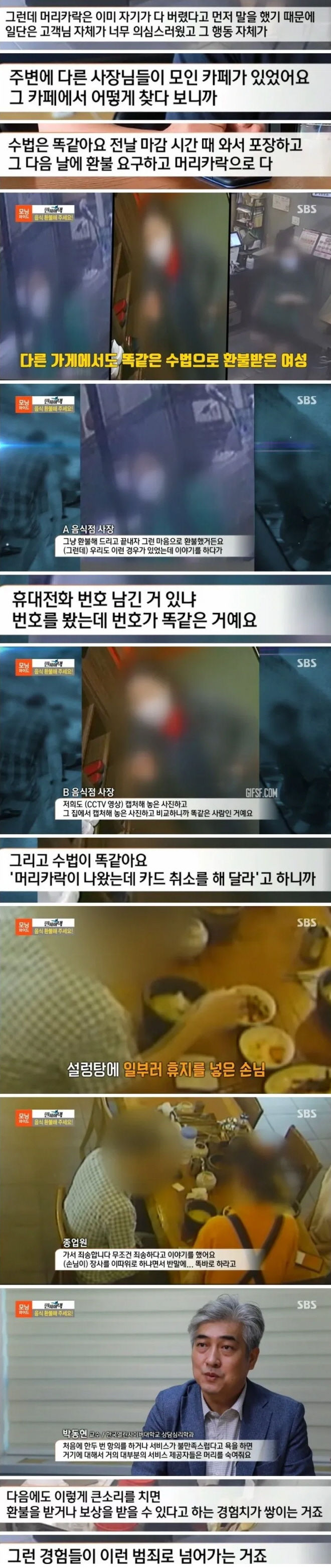 SBS 방송 프로그램 모닝와이드에서는 악의적으로 음식을 환불해달라는 진상 손님에 관한 내용을 다뤘다.