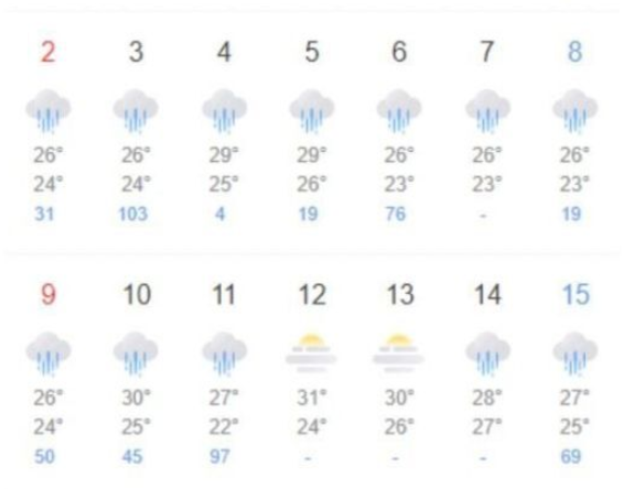 장마 기간은 평균적으로 30~35일이나 이 기간 동안 계속해서 비만 내리는 것은 아니다.