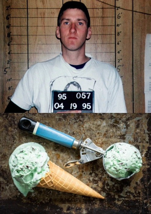 그는 사형 집행 전날 원하는 음식으로 민트 초콜릿 칩 아이스크림 한 통을 받아 먹었다.