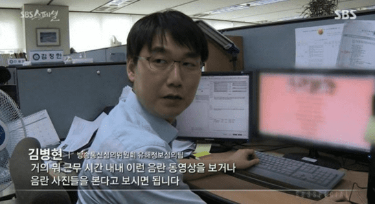 그는 “거의 뭐 근무 시간 내내 이런 음란 동영상을 보거나 음란 사진들을 본다고 보시면 된다”라 자신의 업무에 대해 설명했다.