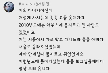 일을 절대로 멈추지 않는 할아버지에게 그 이유를 묻자 할아버지는 “딸만 없으면 이렇게까지 안 해. 아무것도 안 해”라고 답했다.