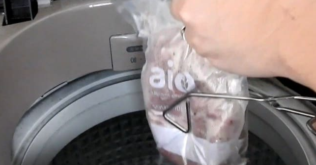 이어 완벽하게 밀봉된 통목살을 일반 세탁기에 넣은 후 일반 세탁보다 높은 온도의 물로 세탁하는 모드인 ‘찌든때’ 모드를 총 두 번(3시간)을 한다고 밝혔다.