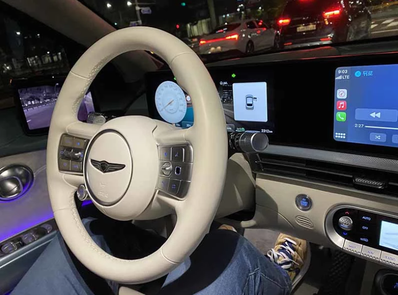 다른 제네시스 차량처럼 전면부에두 줄 디자인의 쿼드램프를 적용했다.