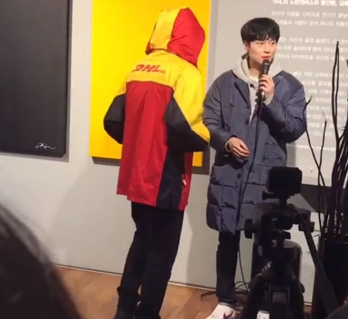 지난 29일 김충재는 인스타그램에 그래픽 디자이너 이덕형과 콜라보한 전시회 영상을 게시했다.