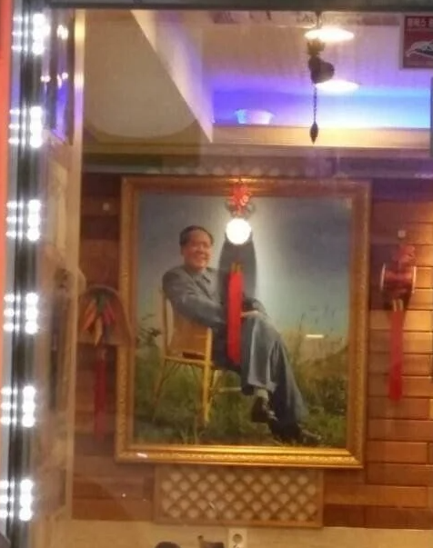 한 식당 안 모습을 들여다보니 중화인민공화국 제1대 중국국가주석이었던 모택동(마오쩌뚱)의 사진이 걸려 있었다.