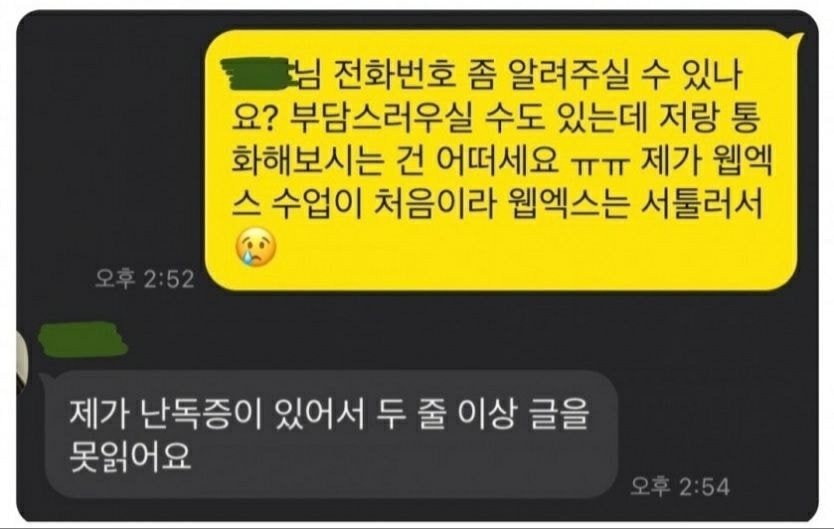 글쓴이는 “대화를 원해서 말을 걸었지만, 난독증이 있다고 합니다.”라며 당시 상황을 전했다.