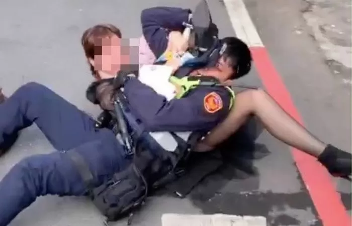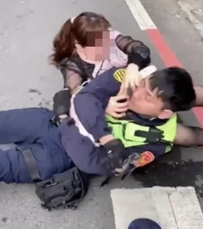 지난 2일 대만 매체에서 순찰을 돌던 한 경찰이 주정차 금지구역에 주차된 차량을 견인하자 암바를 건 여성을 공개했다.