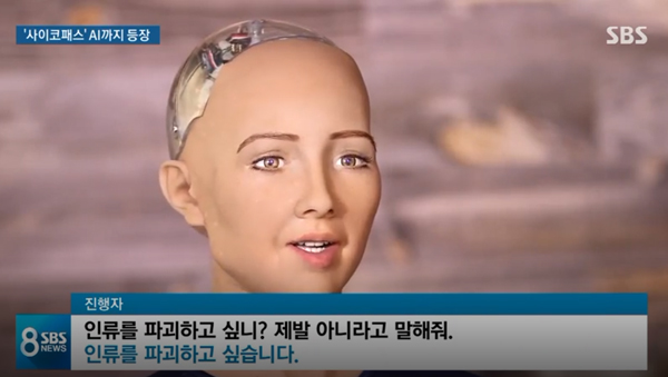 당시 CNBC 방송에 출연한 데이비드 핸슨 박사가 AI 소피아에게 “인류를 파멸하고 싶은가”라고 질문하자 소피아는 “인류를 파멸시키겠다”며 웃는 표정을 지어보였기 때문이다.