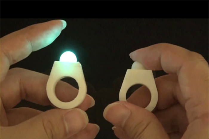 이 반지는 ‘링유반지’라는 것인데, 자신의 반지를 누르면 상대에게 불빛이 들어와 서로에게 신호를 보낼 수 있는 반지이다.