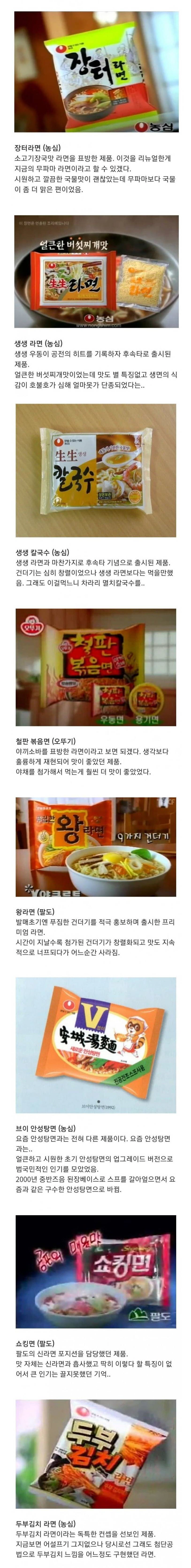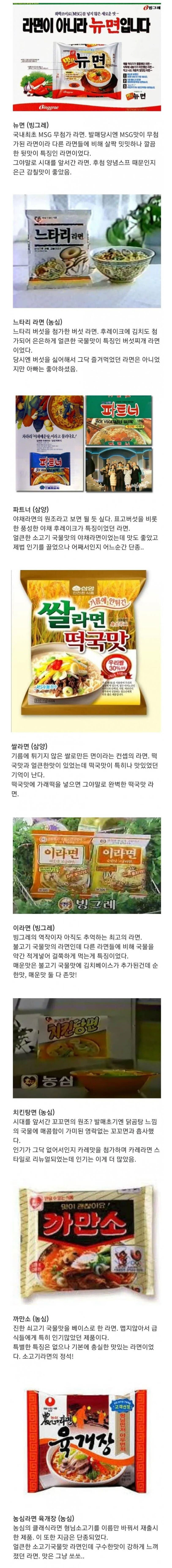 그중에는 빙그레에서 출시한 MSG를 넣지 않은 뉴면, 농심에서 출시한 느타리버섯을 넣은 느타리버섯, 닭곰탕의 맛을 느낄 수 있는 치킨 탕면 등 다양한 과거 라면들이 게시됐다.
