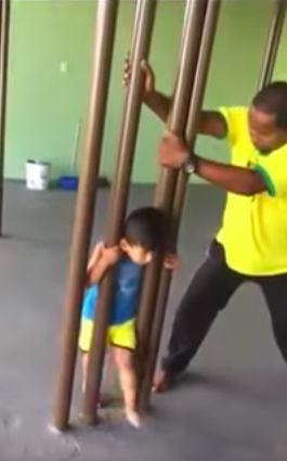 그리고 놀랍게도 몇 초 만에 아이는 막대 사이에서 빠져 나올 수 있었다.