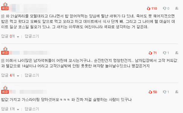 21살 여자친구한테 밥값을 다 내게 하는건 찌질한데?” “야 너가 밥 값 계산 하려고 해도 계산을 못하게 하는게 정상이야”