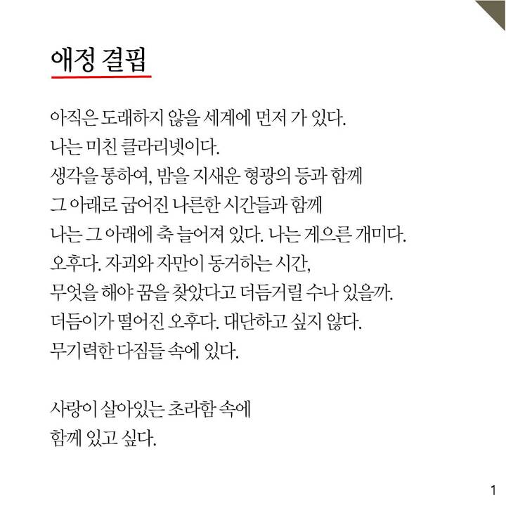 만약 상처가 많은 사람에게는 해당 글씨가 ‘결핍’으로 읽힐 것이고, 누군가에게 다가가고 싶은 사람은 ‘끌림’으로 읽힌다고 한다.